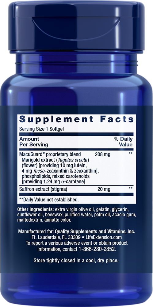 Life Extension – MacuGuard Očná podpora so šafranom – 60 mäkkých kapsúl