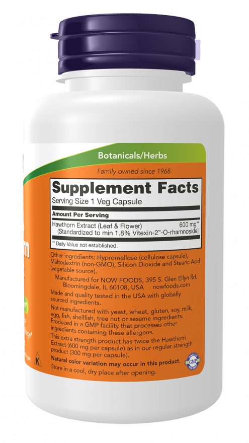 NOW Foods – Hagtornsekstrakt, 600mg Ekstra Styrke – 90 kapsler