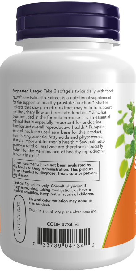 NOW Foods – Så Palmetto-ekstrakt med græskarfrøolie og zink, 80 mg – 90 bløde kapsler