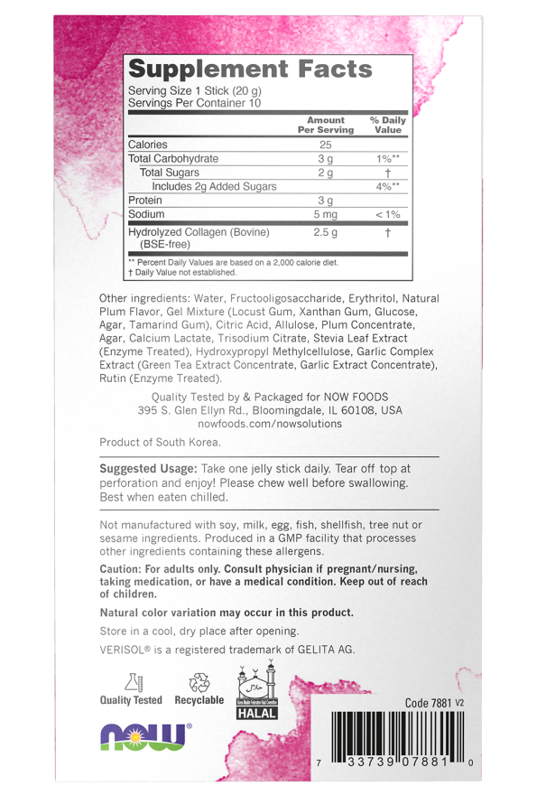 NOW Foods – Kolagénový krásny komplex v želé tyčinkách, sladká slivka – 10 tyčiniek