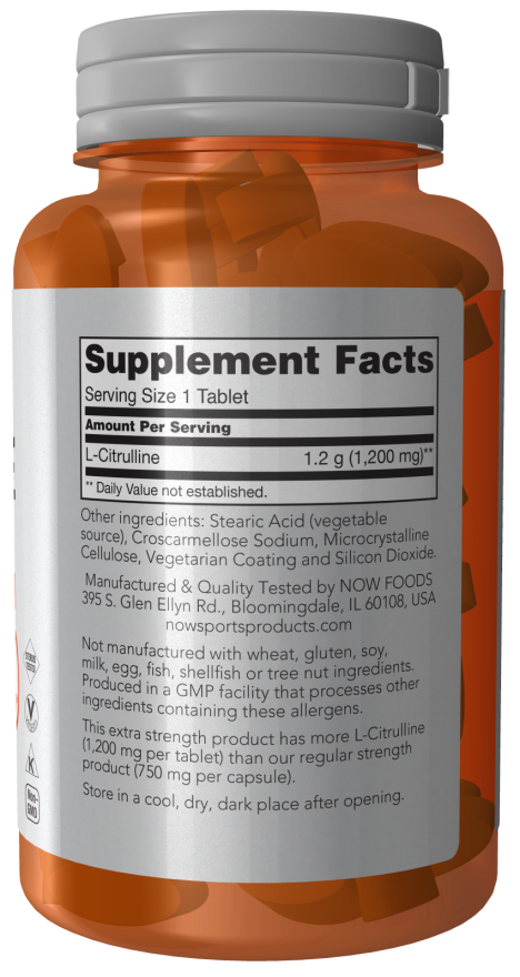 NOW Foods – L-Citrullin,1200mg Ekstra Styrke – 120 tabletter