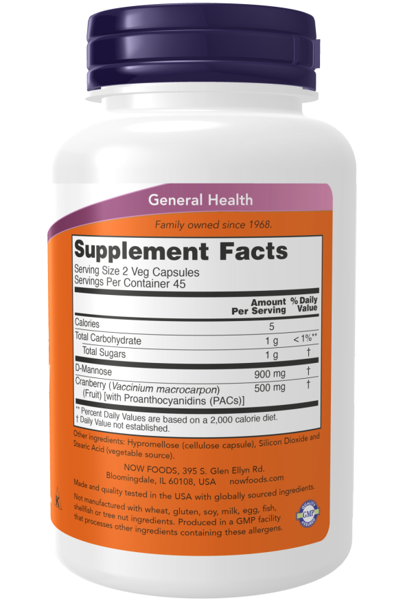 NOW Foods – Mannose Tranebær – 90 kapsler