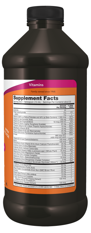 Tekutý multivitamin NOW Foods nie je len ľahko stráviteľný, ale jeho praktická tekutá forma umožňuje jednoduché dávkovanie podľa potreby. Ideálny pre tých, ktorí uprednostňujú produkty s prírodnými zložkami vo svojom dennom režime.