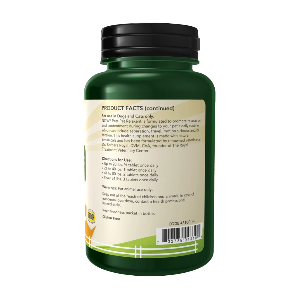 Názov produktu: NOW Pet health Pet Relaxant for Dogs & Cats, 90 žuvacích tabliet.