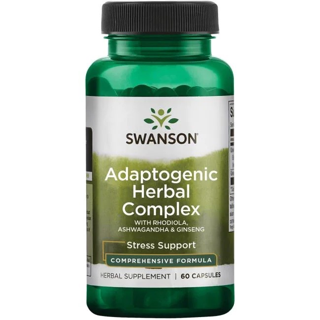 Swanson – Adaptogen Urtekompleks med Rhodiola,Ashwagandha & Ginseng – 60 kapsler
